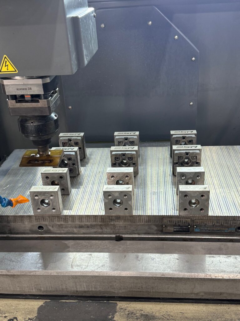 HOMEEDM加工 3R電極取付治具に社名ロゴ刻印 2024年10月31日2026年2月25日 EDM加工 弊社は標準で3Rの治具を使用して電極製作をしていますが、時々客先にも貸出しする事も有りますので、 識別の為に社名のロゴを放電で刻印しました。 2024年10月31公開済みの物を再投稿しました 放電加工機 2号機搬入しました 銅製部品への加工(スリット加工)